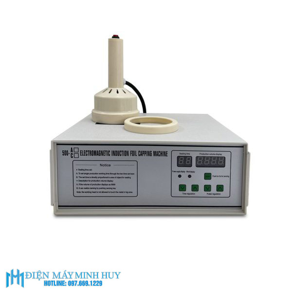 Máy dán màng seal 500A (MHĐG-I01) là máy dán màng nhôm cầm tay được ưa chuộng nhất hiện nay. Máy sử dụng từ trường tần số cao để làm nóng lớp nhôm để hàn vào miệng hộp. Máy sử dụng phù hợp cho tất cả các loại chai nhựa : PE, PET, PVC, HDPE, PP, chai thủy tinh PS.