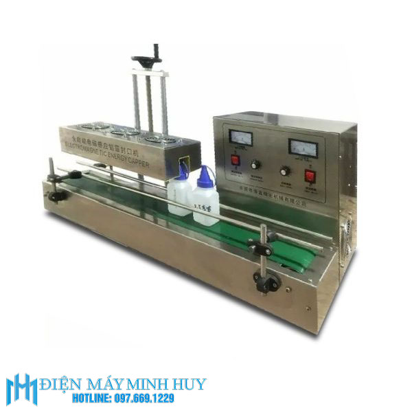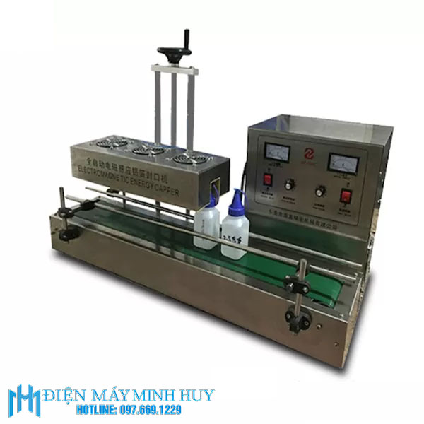 Máy dán màng seal tự động 1600B (MHĐG-I05) là thiết bị sử dụng hệ thống sóng cao tần để dán màng seal cho sản phẩm. Khi chai được đưa đi qua bộ phận cảm ứng điện tử, màng nhôm đặt sẵn trong nắp chai sẽ bị từ hóa làm nóng chảy.